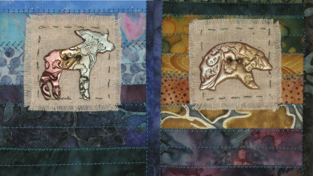 These buttons are quick and fun, and there are endless ways to vary them. I cover all of the steps, and all of the supplies needed, most of which are optional. And of course, what to do with them! Here are a few examples; of course quilted greeting cards are my favorite place to put them!